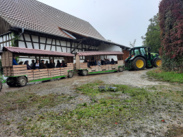 Unser Tagesausflug führte uns heuer an den Bodensee. Auch wenn das Wetter sich nicht von der besten Seite zeigte, freuten sich über 40 Teilnehmer, ausgestattet mit Schirmen, auf den Tag. Mit dem Apfelzügle der Familie Roth vom Hof Neuhaus fuhren wir durch die Obstplantagen und hörten vom Chef des Hauses Wissenswertes rund um den Apfel, gespickt mit viel Humor. Danach stärkten wir uns beim Mittagessen auf dem Hof und konnten im Hofladen Äpfel und Eingemachtes einkaufen. Am Nachmittag ging es am Bodensee entlang zu einer Brennereibesichtigung mit Probe in Hörbranz. Nach einer Führung durch die Brennerei und einer ausgiebigen Probe der verschiedensten Schnäpse konnte man einen guten Tropfen für Daheim erwerben. Auf der Heimfahrt kehrten wir zum Brotzeitmachen beim Staudenwirt in Finning ein.