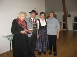 Im Rahmen der Weihnachtsfeier wurden Ehrungen für langjährige Mitgliedschaften zum Verein vorgenommen: Hannelore Späth 40 Jahre, Maria Sabine Himsl 40 J., Thea Bock 50 J., Erna Meindl 50 J., Sissi Taubert 50 J., Hedi Himsl 65 J. und Reinhard Srnec 70 Jahre. Bei Kaffee und Kuchen, mit kleinen Geschichten, gemeinsamem Singen von Weihnachtsliedern wurden die anwesenden Vereinsmitglieder rasch in die staade Zeit geführt.