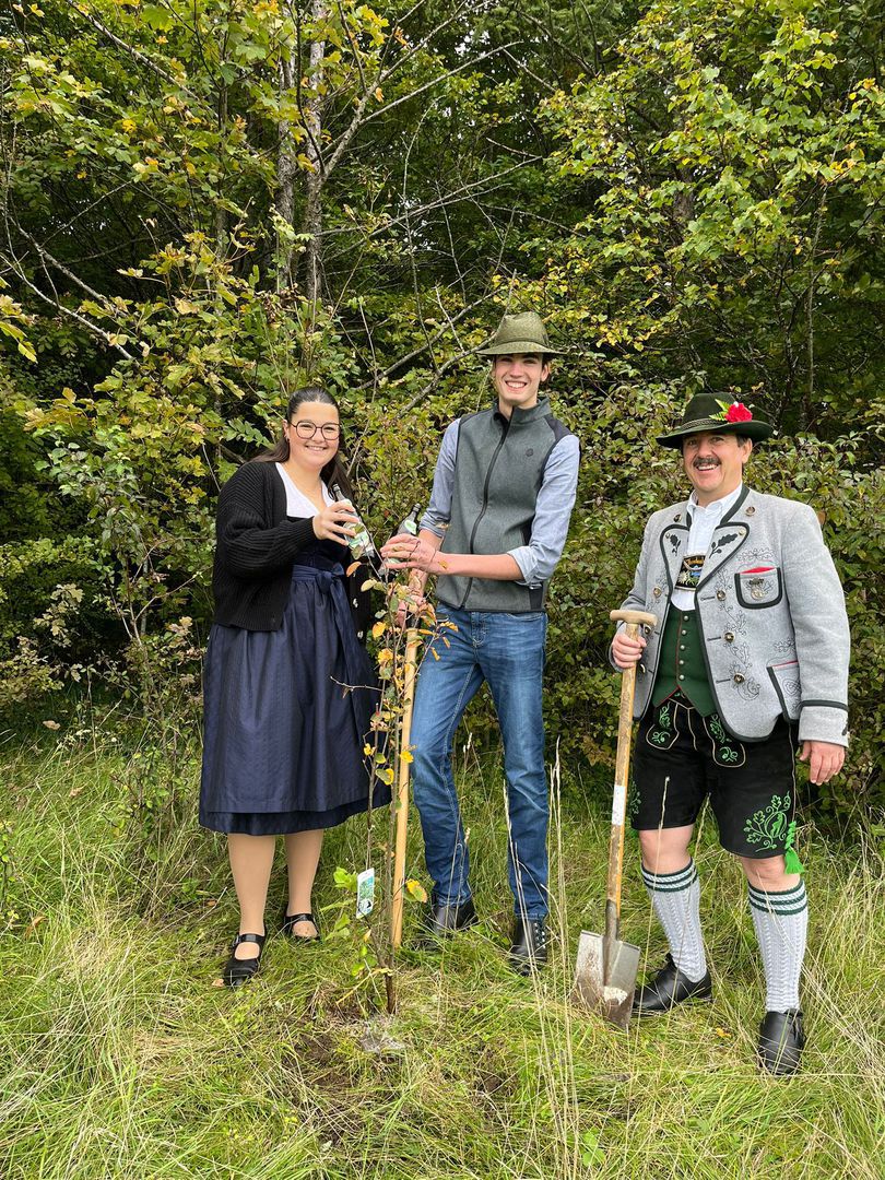 Unsere jungen Trachtler beteiligen sich an der Baumpflanzaktion oberbayerischer Vereine und pflanzen eine Felsebirne.